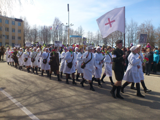 Также коллектив Омутнинской ЦРБ принял активное участие в праздничных городских мероприятиях, посвященных 70-летию Победы в Великой Отечественной войне. 9 мая в праздничном шествии «Вперед к Победе!» медработники прошли в костюмах и с атрибутами военных лет. Во время шествия они исполняли речевки и пели песни. Театральное действие наряду с художественным оформлением создали хорошее настроение всем участникам праздничных мероприятий. По итогам шествия, Омутнинская ЦРБ награждена дипломом победителя за творческий подход к оформлению колонны в праздничном шествии «Вперед к Победе!».