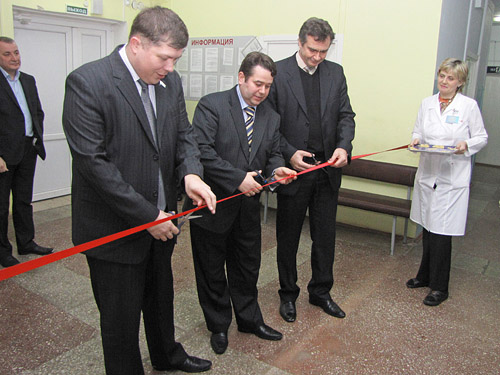 Заместитель Председателя Правительства Кировской области Д.А.Матвеев, глава г.Слободского Е.А.Рычков, главный врач Слободской ЦГБ А.В.Черняев.