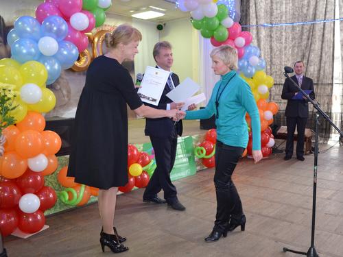 Глава департамента здравоохранения Е.Д.Утемова вручает грамоты.