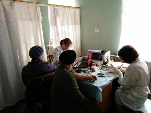Сотрудники Центра здоровья Вятскополянской ЦРБ проводят диспансеризацию в одном из населенных пунктов района.