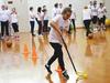 Волонтеры учат детей правильно чистить зубы.
