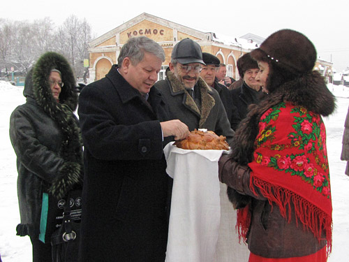 Гостей мероприятия встречали хлебом-солью.