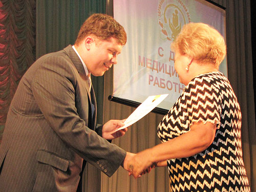 На вечере Д.А.Матвеев вручал почетные грамоты и благодарственные письма Минздравсоцразвития РФ, Правительства Кировской области.