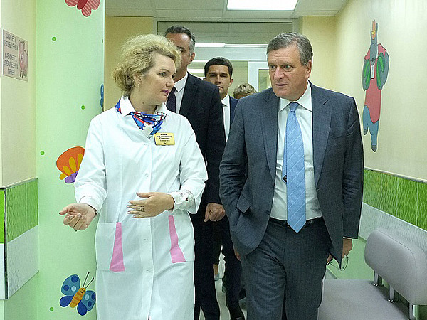Врио Губернатора Кировской области Игорь Васильев и главный врач Кировского детского клинического консультативно-диагностического центра Мария Савинова.