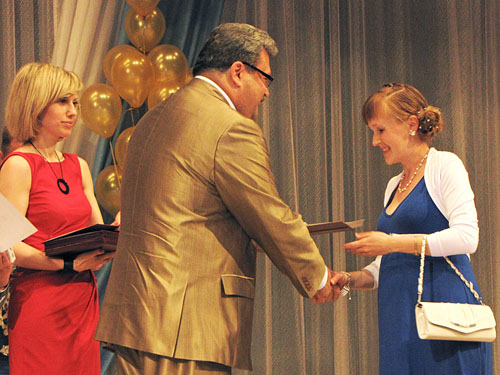 Ректор КГМА И.В.Шешунов вручает дипломы выпускникам.