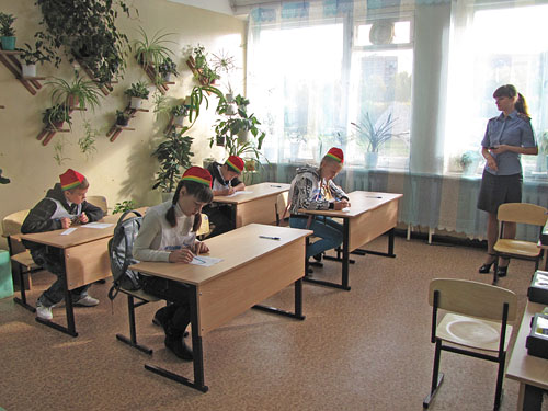 Ребята отвечают на вопросы теста по оказанию первой медицинской помощи.