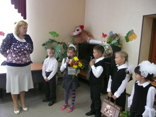 В ответ на теплые поздравления, первоклассники и ученики других классов выступили с ответным приветствием, подарили цветы и открытки педагогам и гостям праздника.
