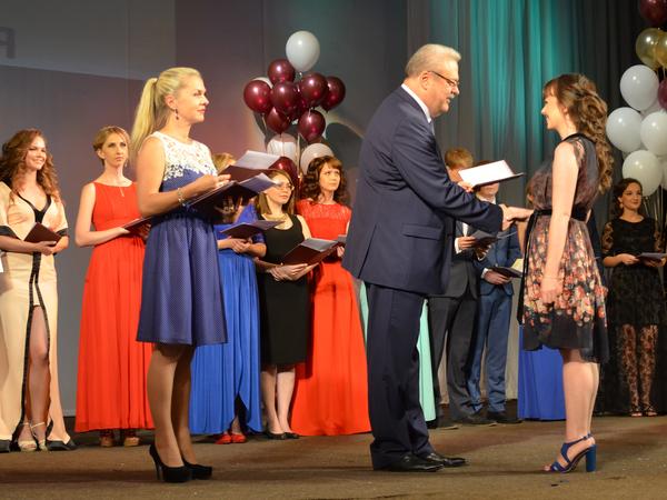 Ректор КГМА И.В.Шешунов вручает красные дипломы выпускникам.