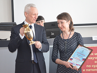 Диплом и переходящий кубок «Эксперт года» получила врач судебно-медицинский эксперт судебно-химического отделения Кировского областного бюро судебно-медицинской экспертизы Светлана Шахматова. Она прочитала на конференции доклад «Судебно-биохимическое исследование трупной крови и субдуральных гематом на наличие метгемоглобина».