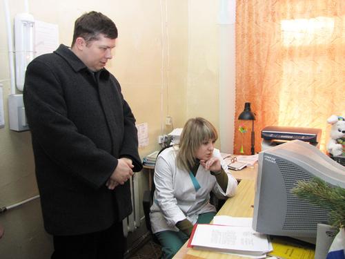 Главе департамента показывают, как в Свечинской ЦРБ работает "Электронная регистратура"