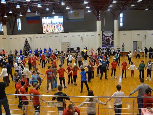 В игре "Хоровод" приняли участие участники команд и болельщики.