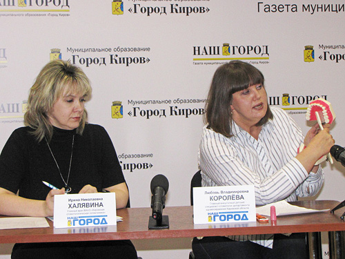Главный врач Кировской стоматологической поликлиники И.Н.Халявина, главный внештатный детский стоматолог департамента здравоохранения Л.В.Королева.