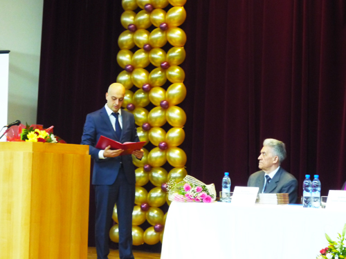 В.А.Журавлева поздравляет заместитель главы департамента здравоохранения А.М.Бондарев.
