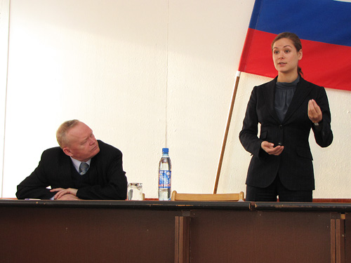 Глава администрации Орловского района Е.А.Горячевский и М.Е.Гайдар.